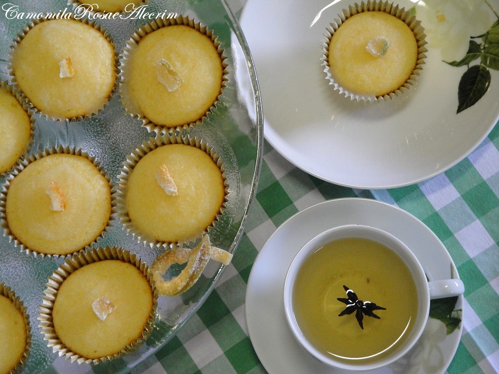 Os Muffins ficam hiper macios e os cristais usei no enfeite em cima do Muffin e no chá que também recebeu uma flor de aniz.