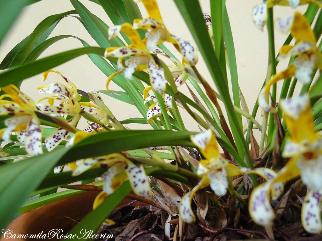 E estas são minhas orquídeas que estão florindo no momento, e outras estão grávidinhas... tenho três vasos destas perfumadas que já mostrei replantando AQUI, e agora elas florescem todas juntas...um perfume só!