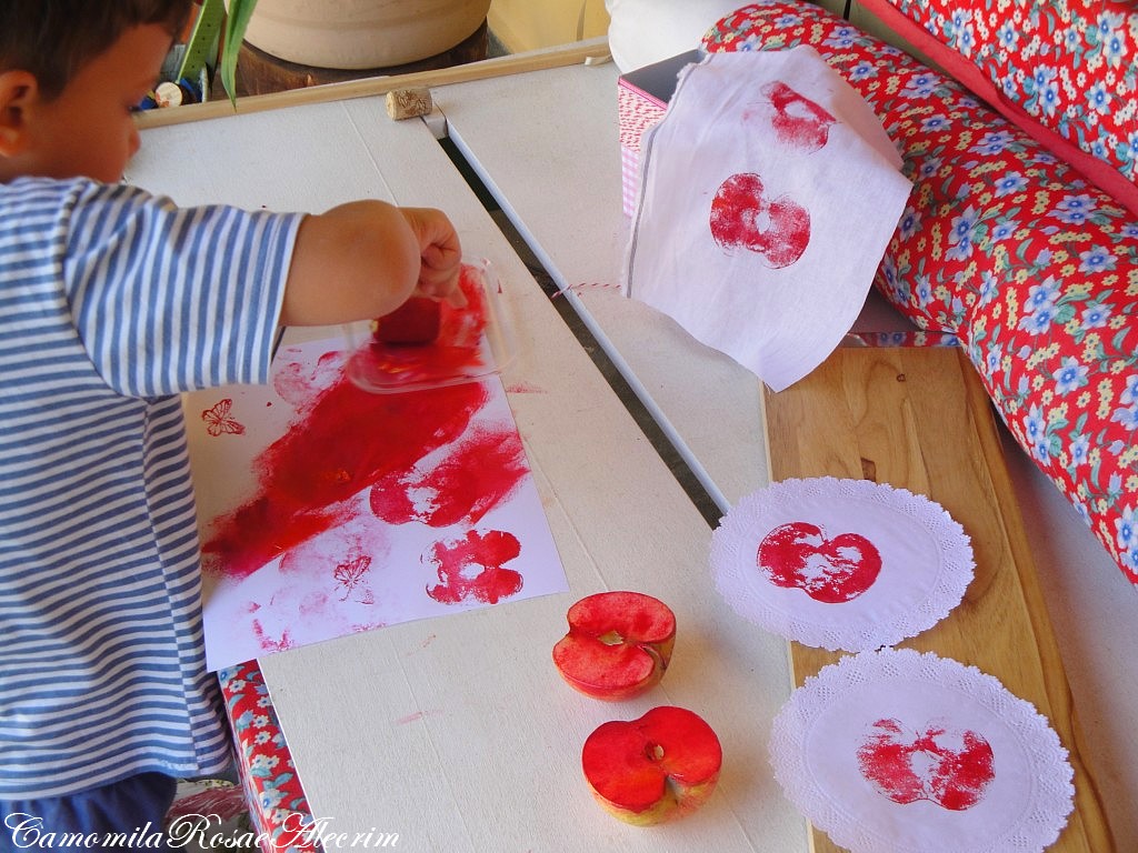 Camomila, que encanto as suas pinturas, as crianças feliz, fazendo arte , trabalhando com a criatividade, maravilha.Eu tb adoro maça. Beijos