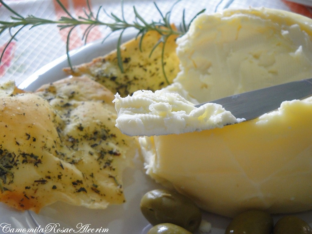 O pãozinho fino com ervas torrado e o queijo compramos no portal da cidade. Quando tirei a foto o queijo já estava destruído...uma facada aqui e outra ali e o queijo sumiu!