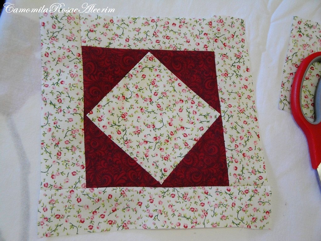 Patch simples de quadrados e triangulo, e a medida você escolhe...eu fiz o floral do centro 10,5cm X 10,5cm.